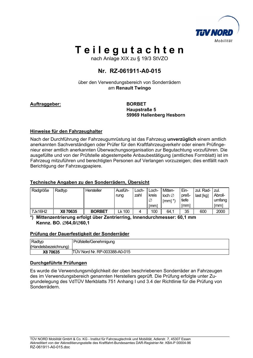 teilegutachten igung Borbet TS85930