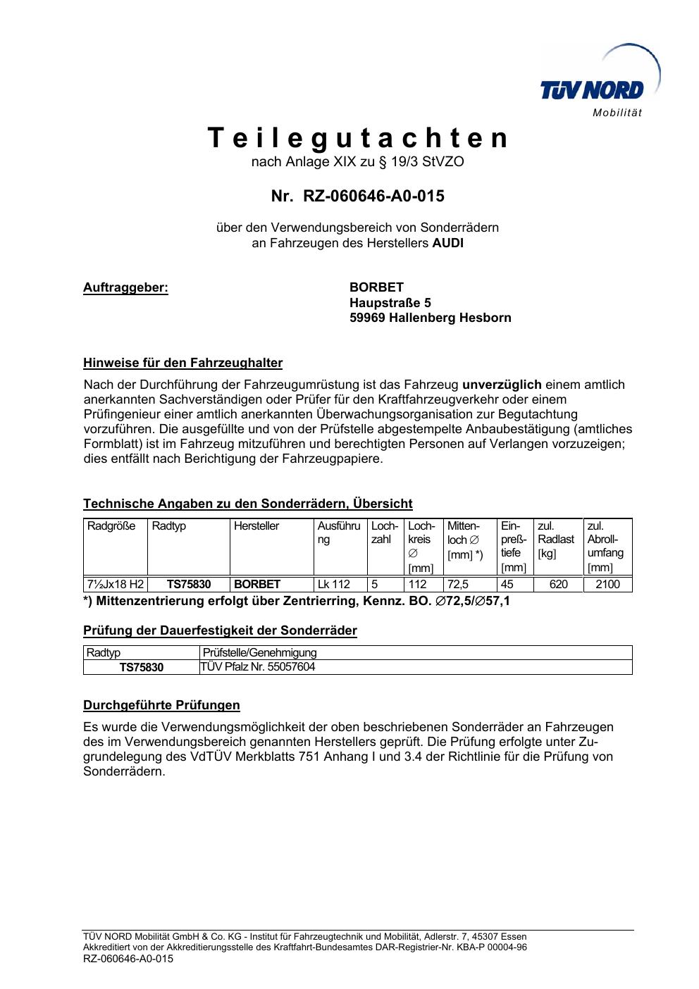 teilegutachten igung Borbet TS85930