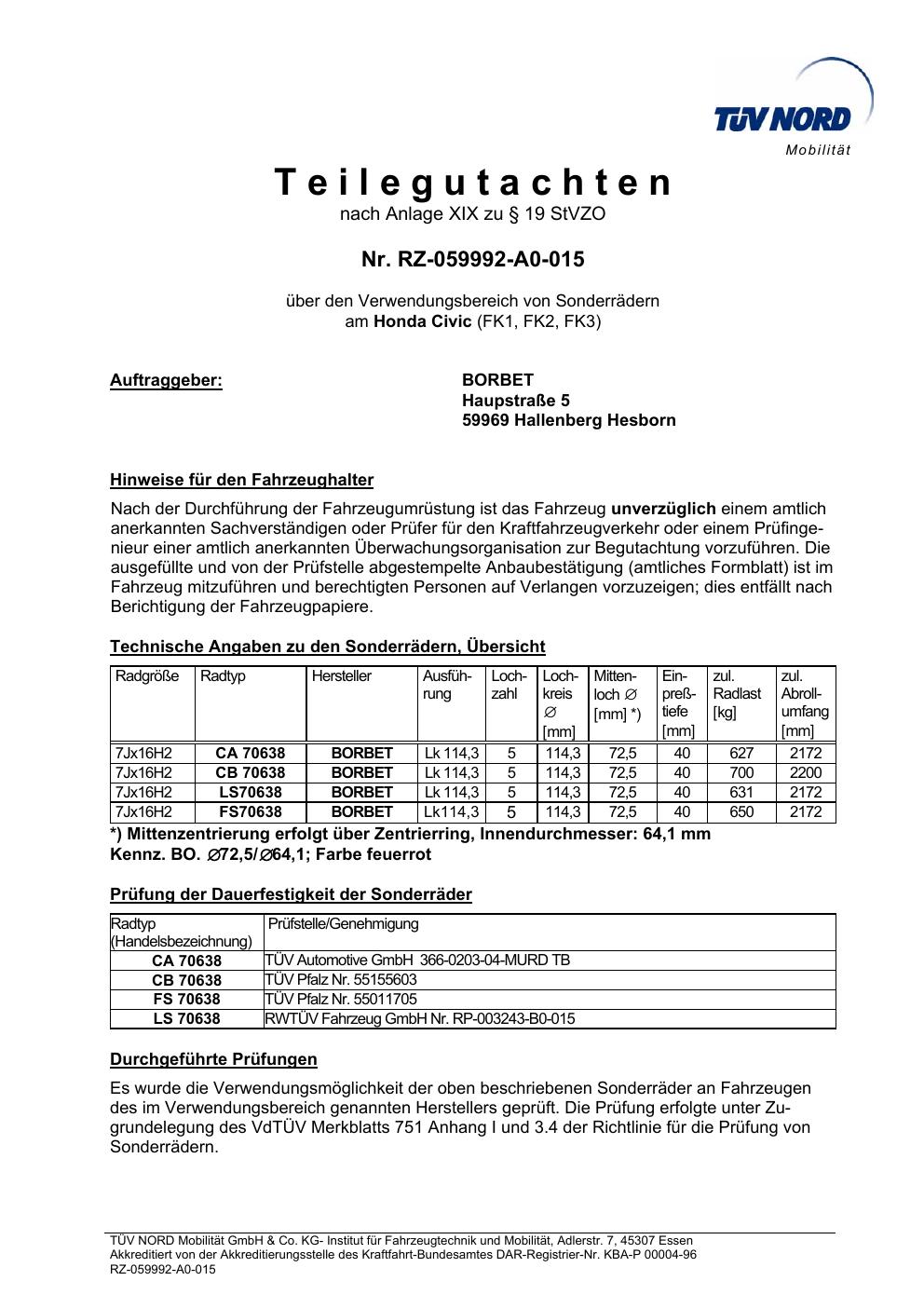 teilegutachten igung Borbet TS85930