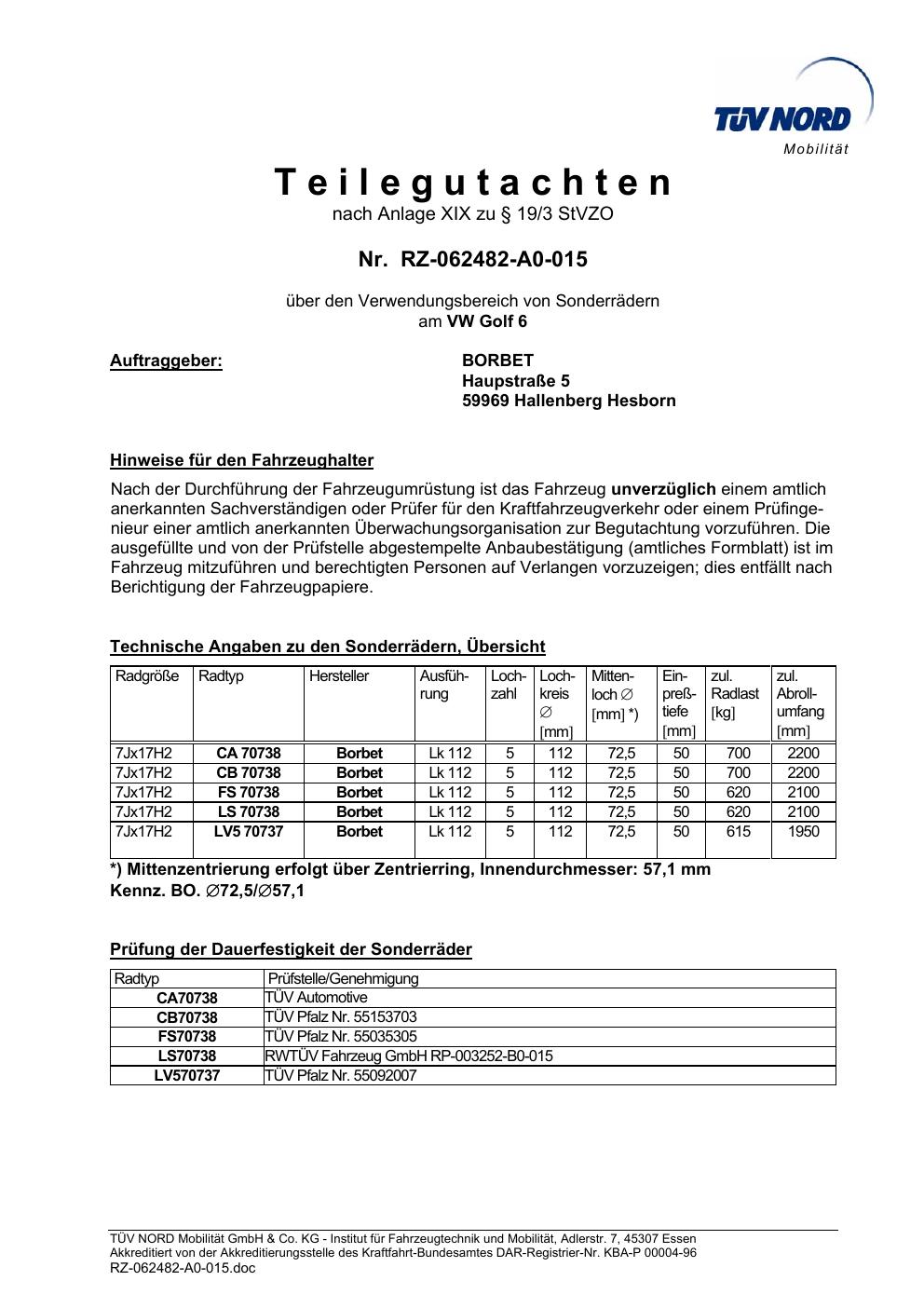 teilegutachten igung Borbet TS85930