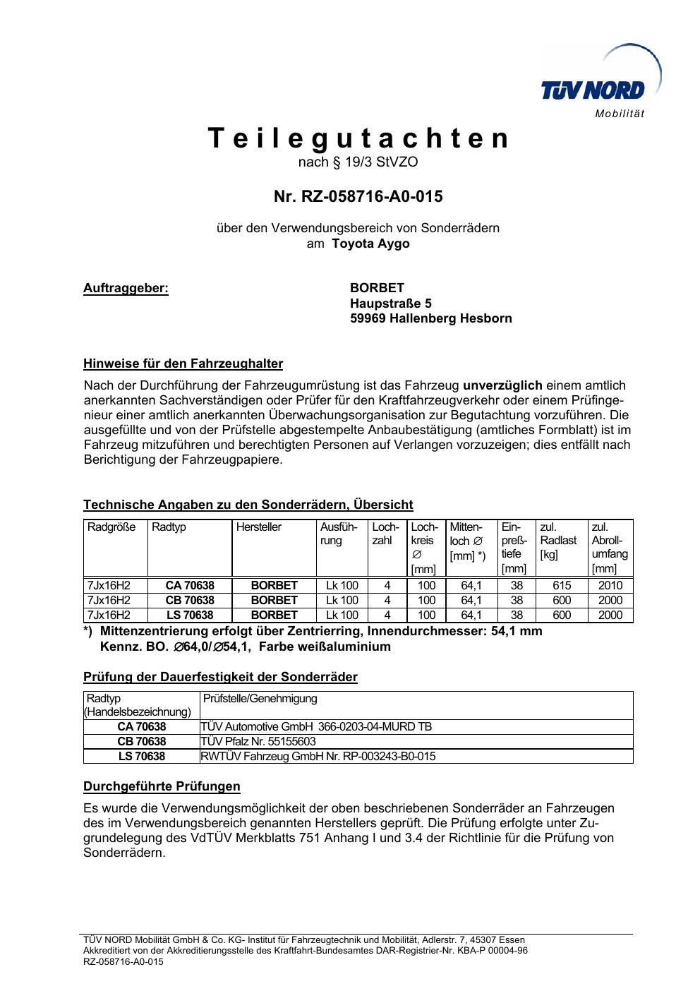 teilegutachten igung Borbet TS85930