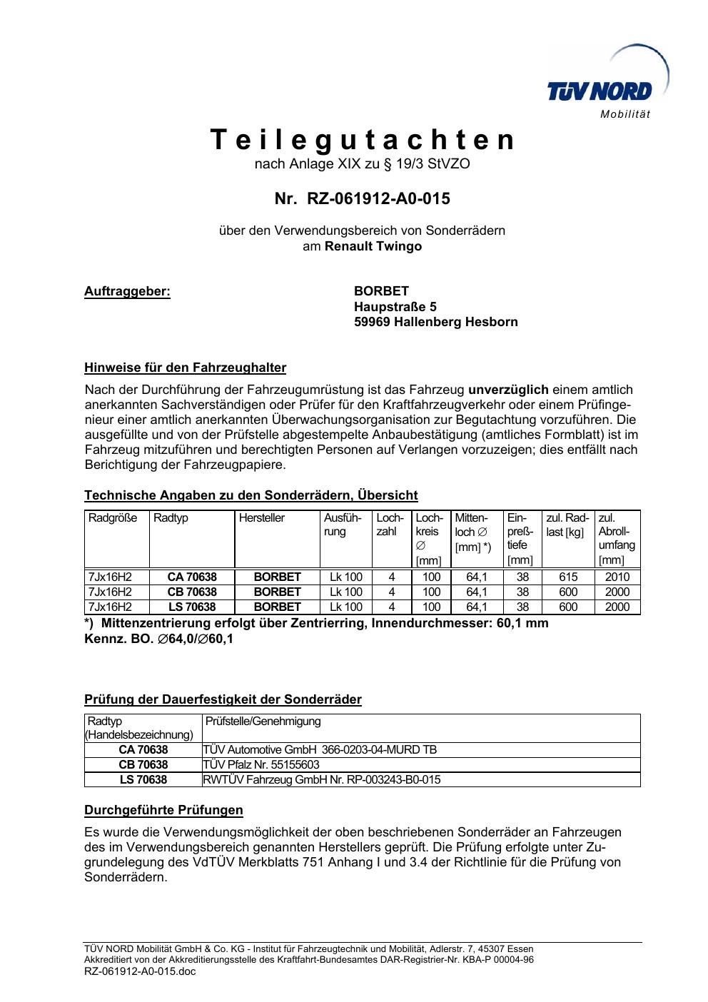 teilegutachten igung Borbet TS85930