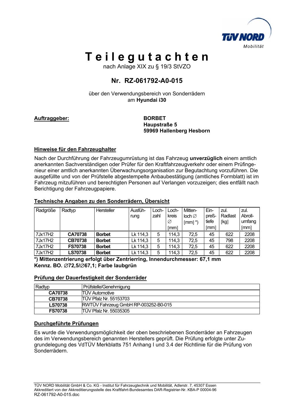 teilegutachten igung Borbet TS85930