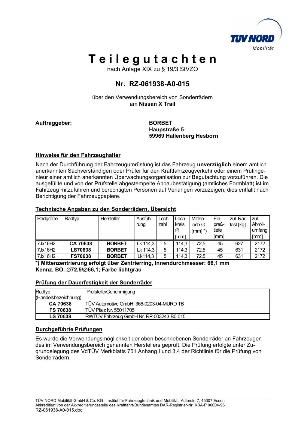 teilegutachten igung Borbet TS85930