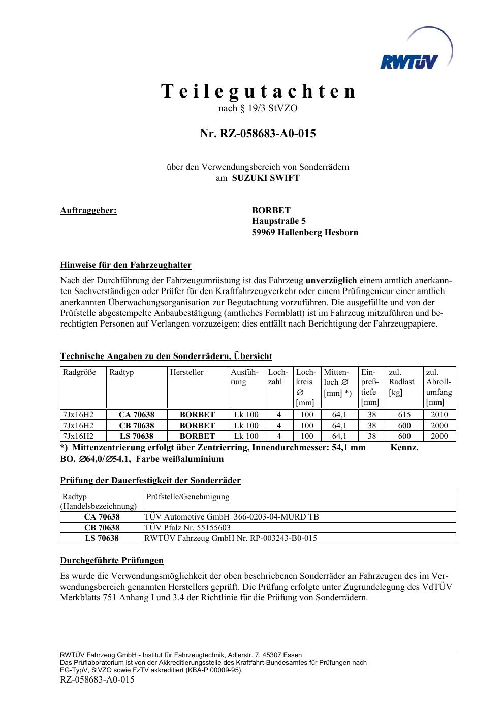 teilegutachten igung Borbet TS85930