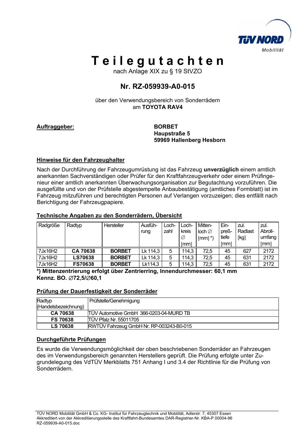 teilegutachten igung Borbet TS85930