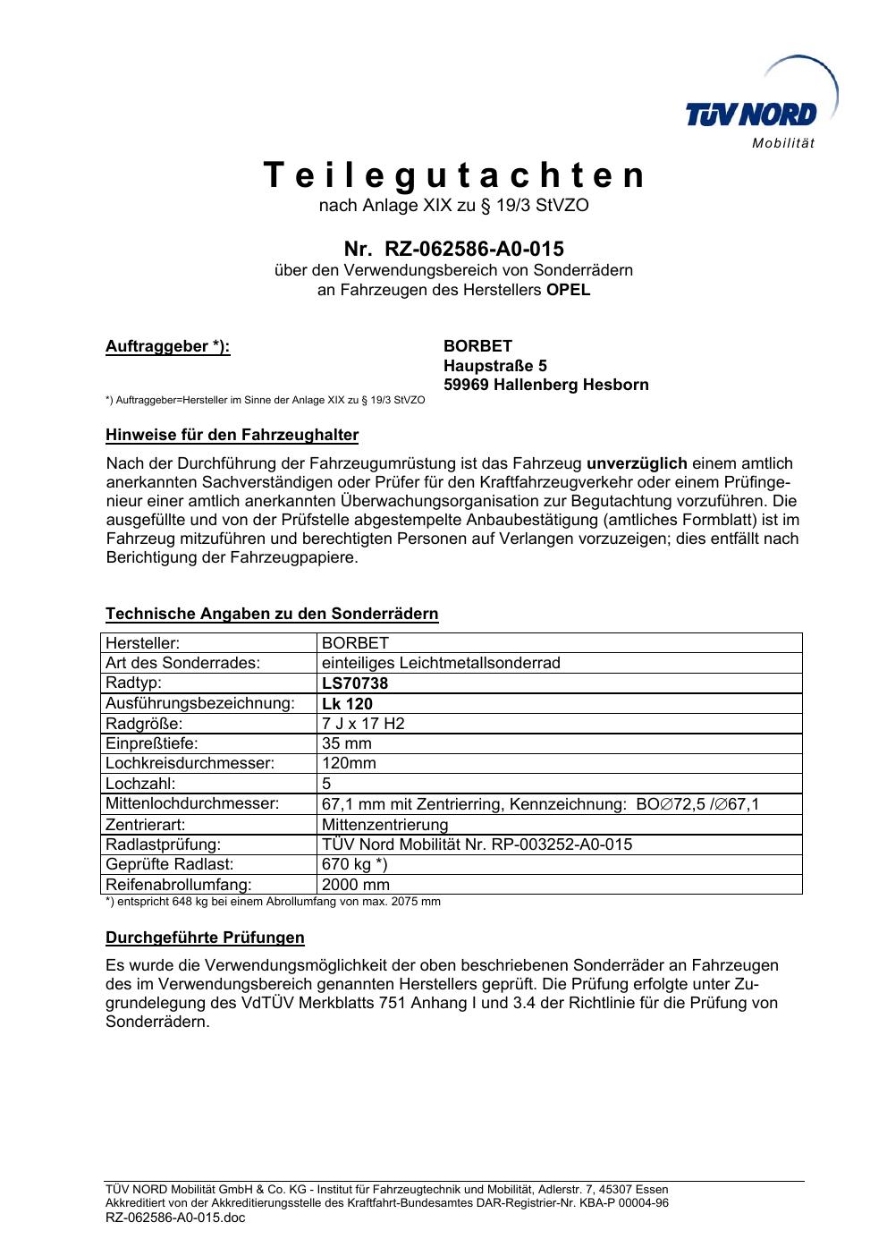 teilegutachten igung Borbet LS70738