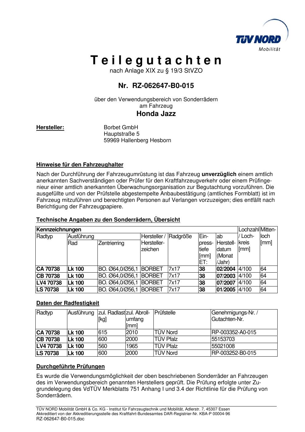 teilegutachten igung Borbet LS 70638