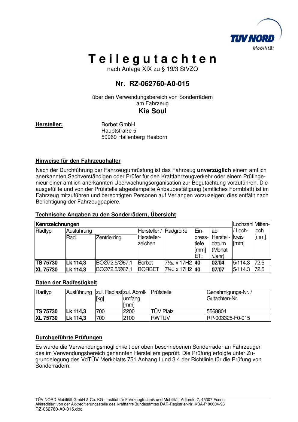 teilegutachten igung Borbet LS 70638