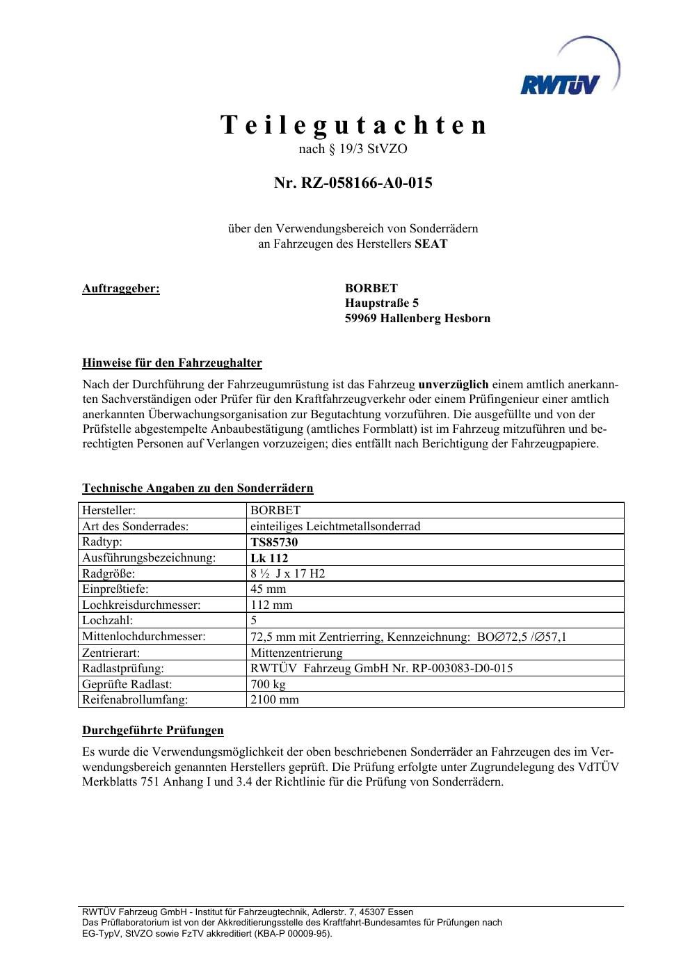 teilegutachten igung brand-borbet TS85730