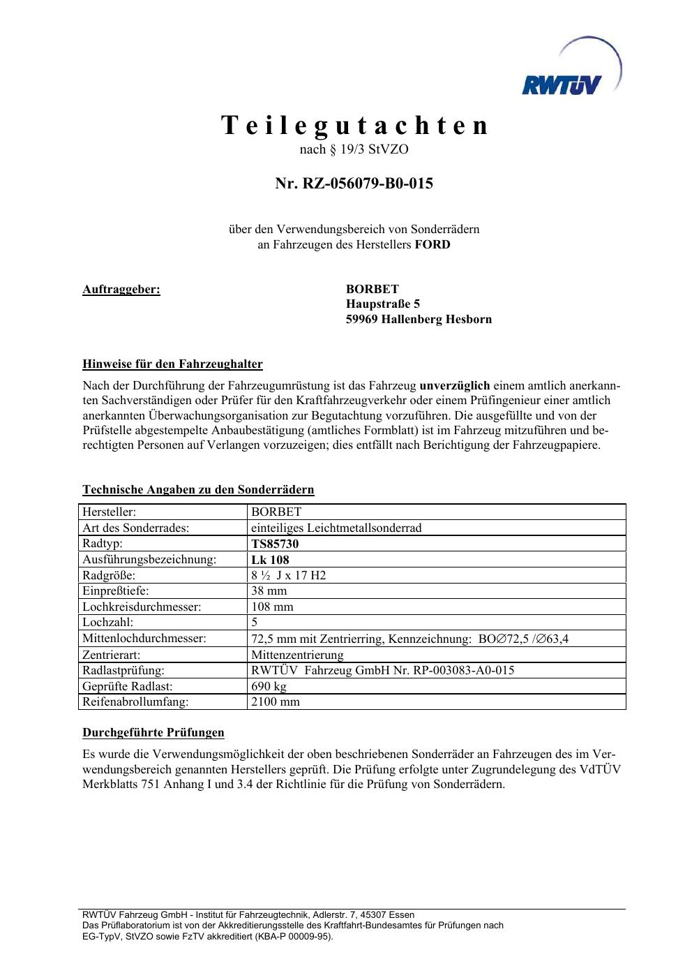 teilegutachten igung brand-borbet TS85730