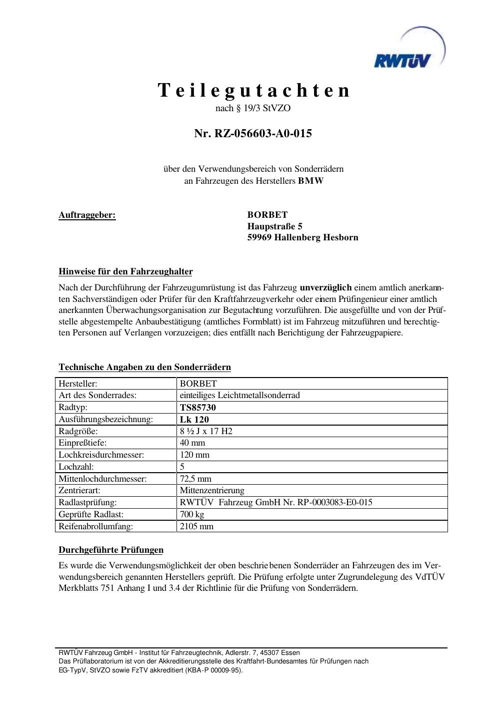 teilegutachten igung Borbet TS85730