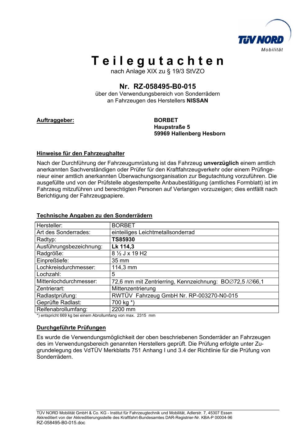 teilegutachten igung brand-borbet TS85930