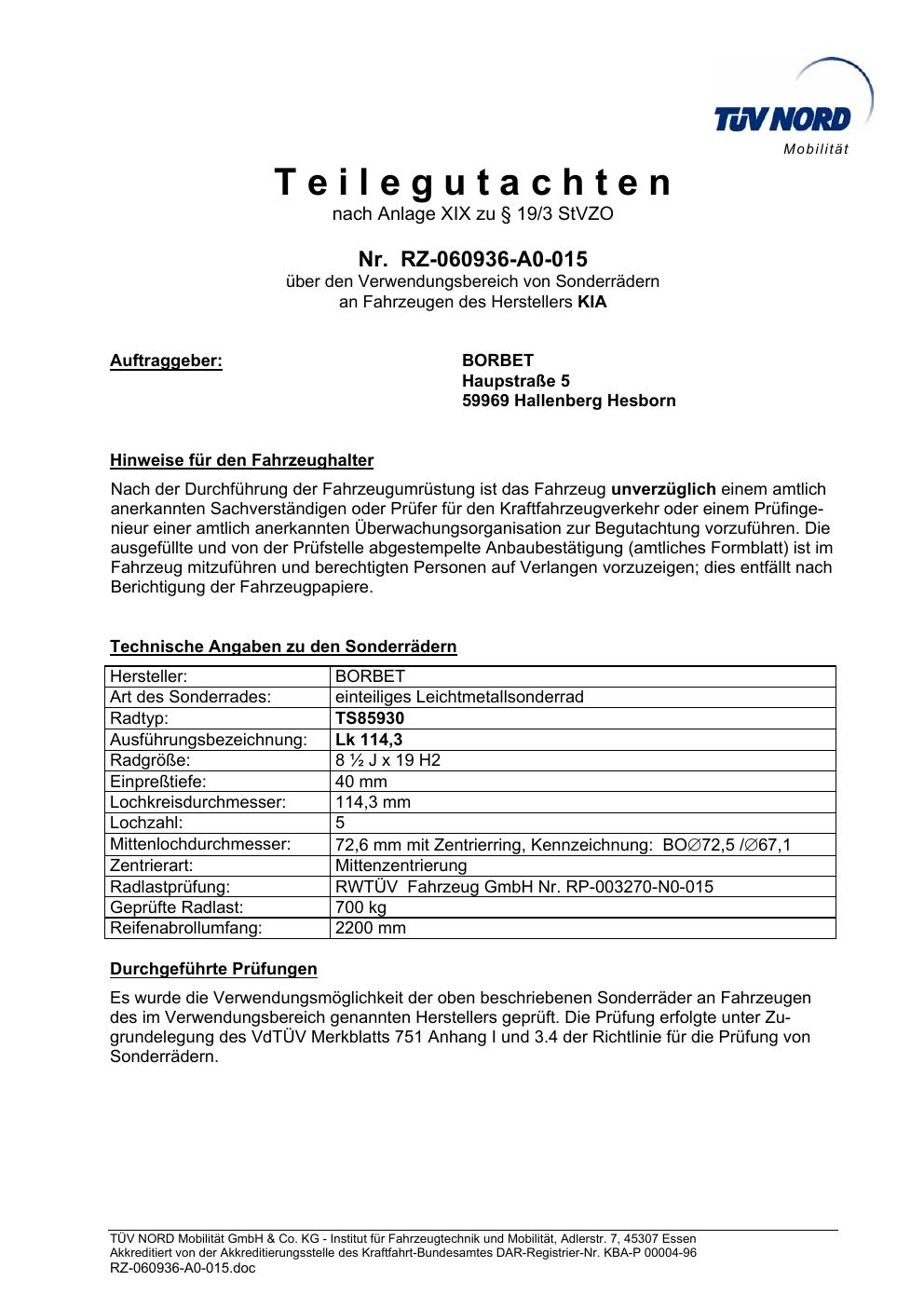 teilegutachten igung brand-borbet TS85930