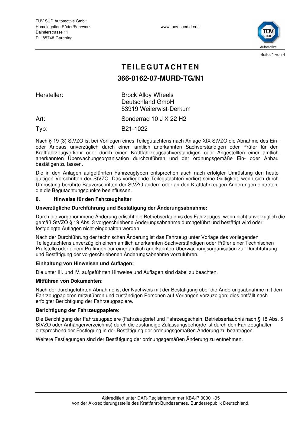 teilegutachten igung Brock B21-1022