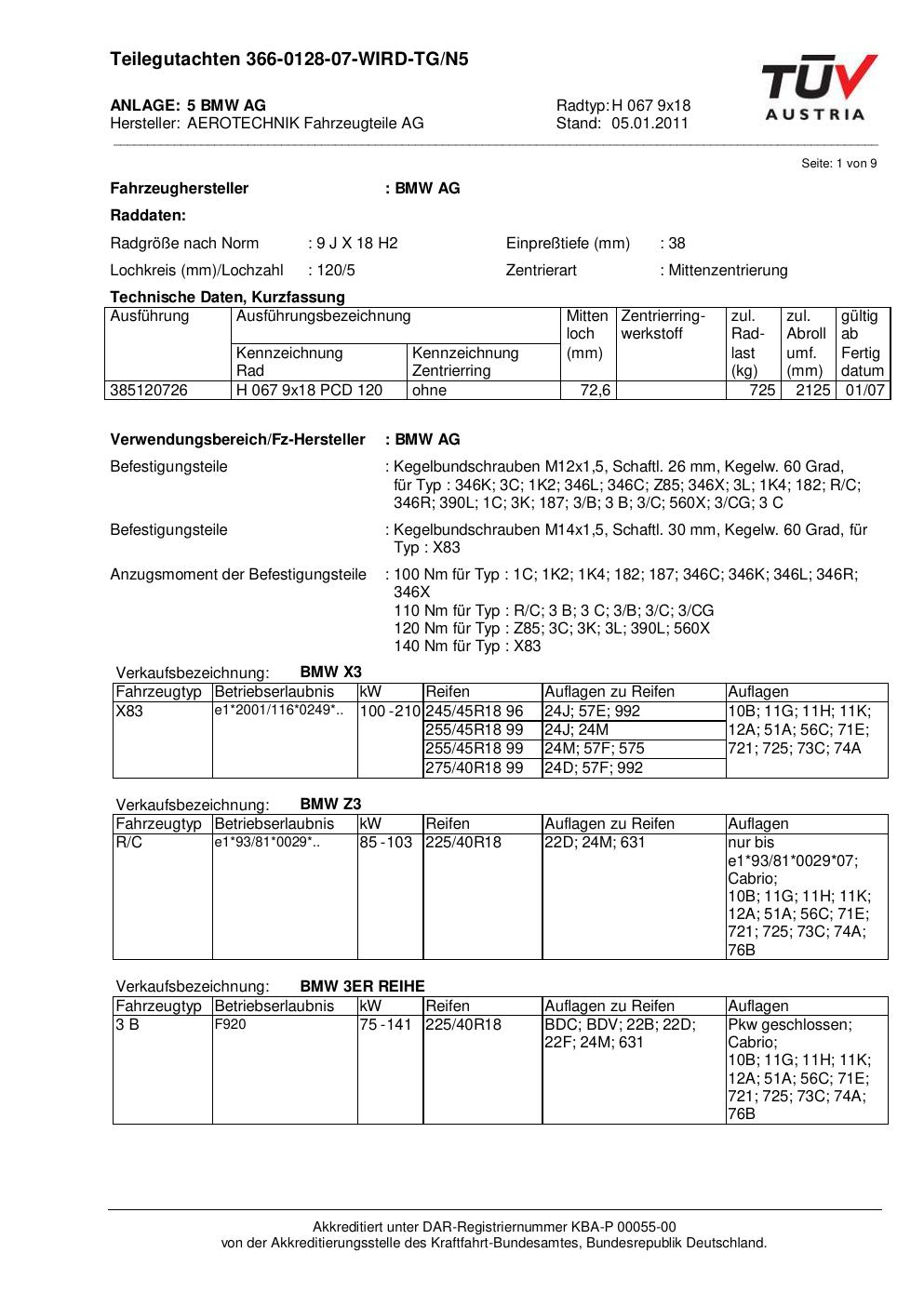 teilegutachten n ATS H 067 9x18