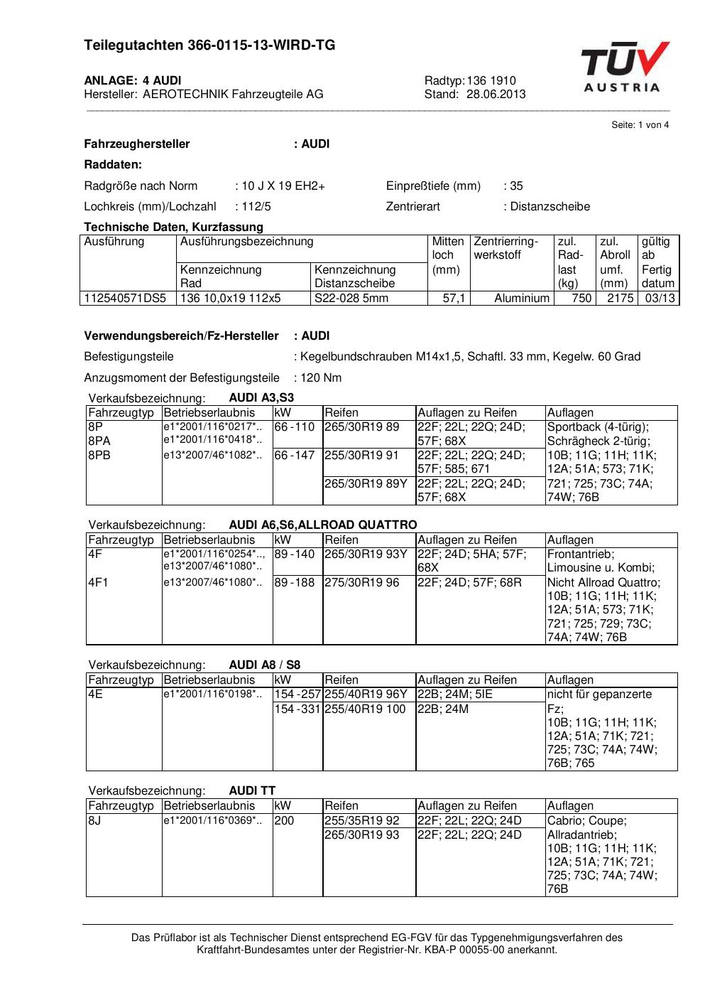 teilegutachten nicht ATS 136 1910