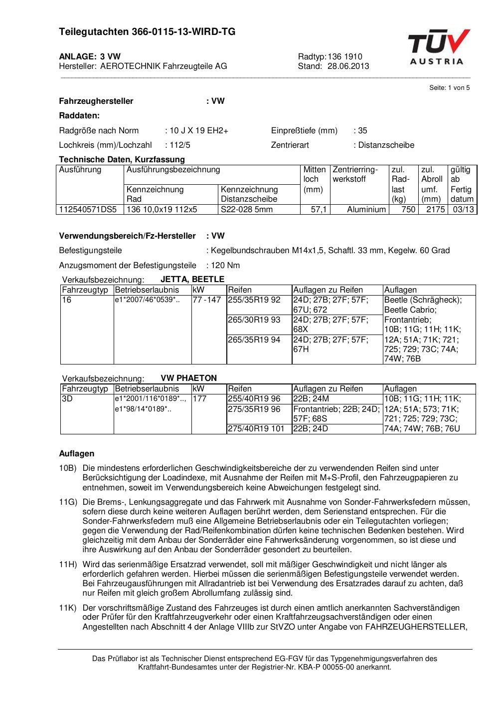 teilegutachten nicht ATS 136 1910