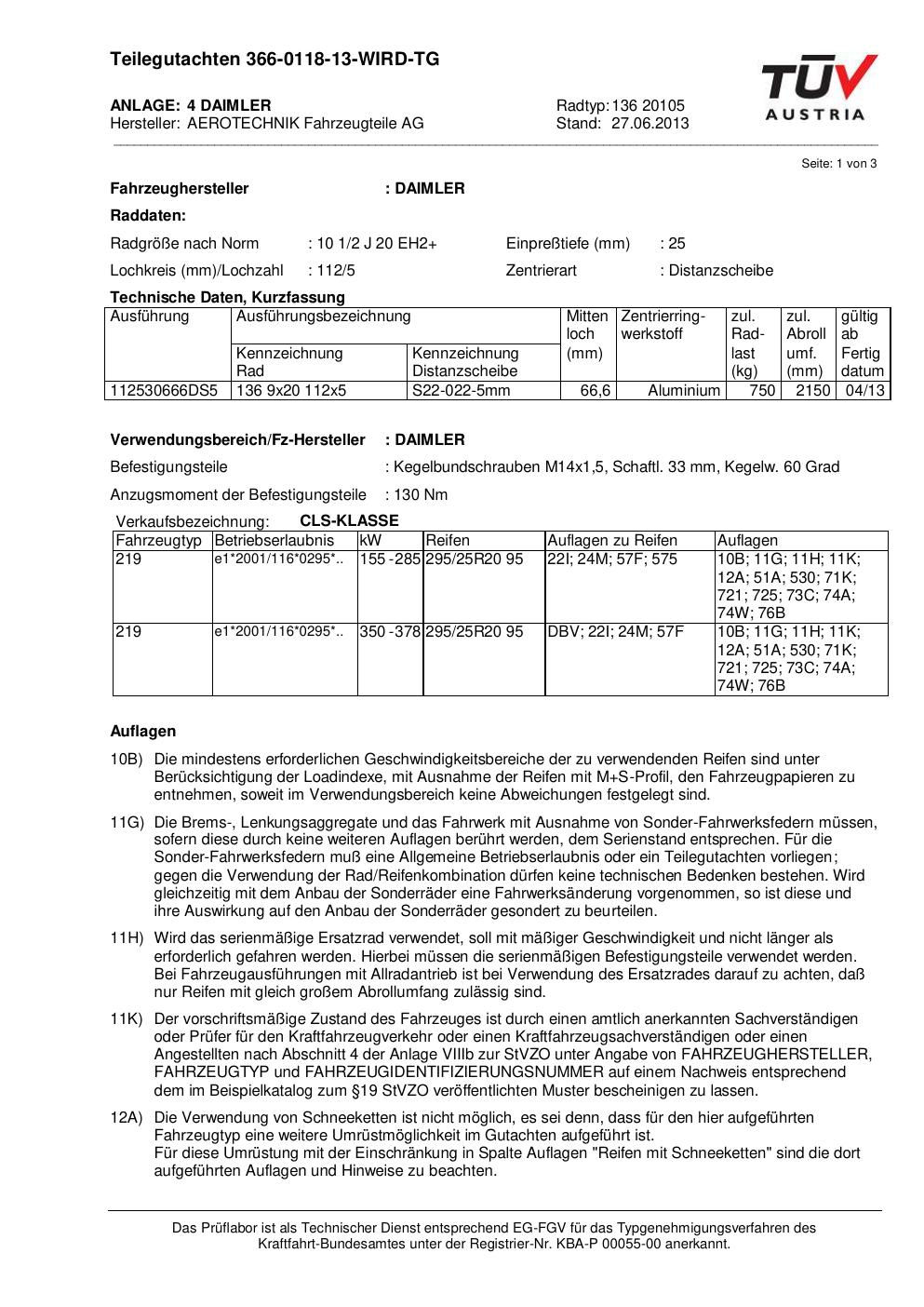 teilegutachten nicht ATS 136 20105