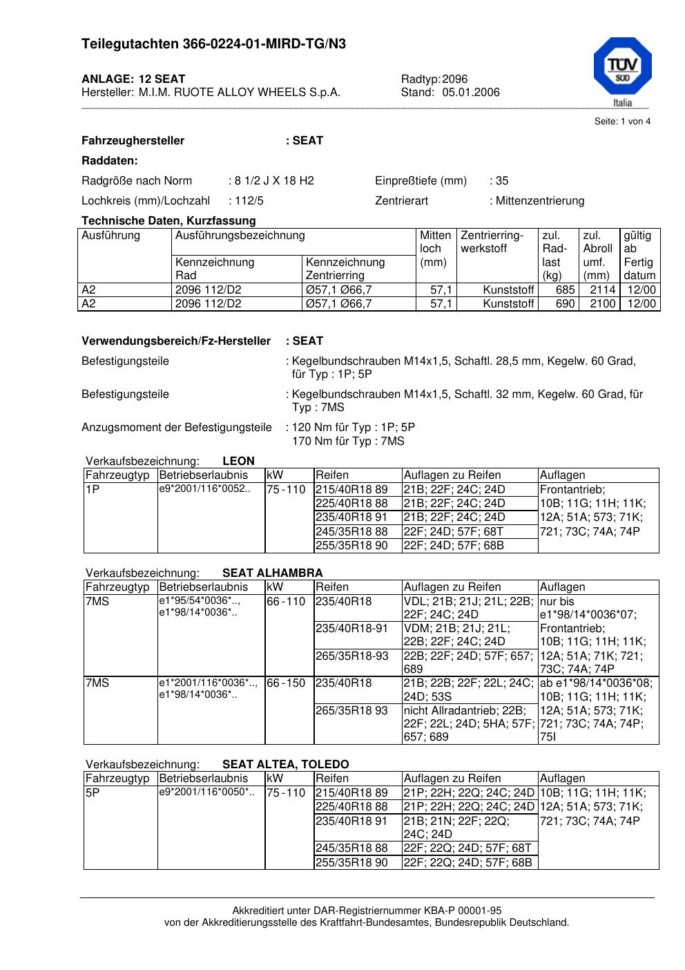 Dieses Gutachten (teilegutachten) bezieht sich auf die Alufelge ATS 2096 in der Ausführung 2Jx18 ET 0, Mittenloch 0 mm . Im PDF findest du typischerweise zulässige Reifengrößen, Auflagen/Anbauhinweise und – je nach Dokument – Hinweise zur Eintragung.