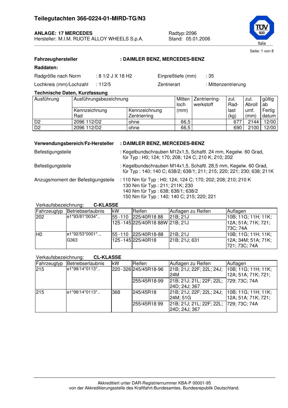 Dieses Gutachten (teilegutachten) bezieht sich auf die Alufelge ATS 2096 in der Ausführung 2Jx18 ET 0, Mittenloch 0 mm . Im PDF findest du typischerweise zulässige Reifengrößen, Auflagen/Anbauhinweise und – je nach Dokument – Hinweise zur Eintragung.