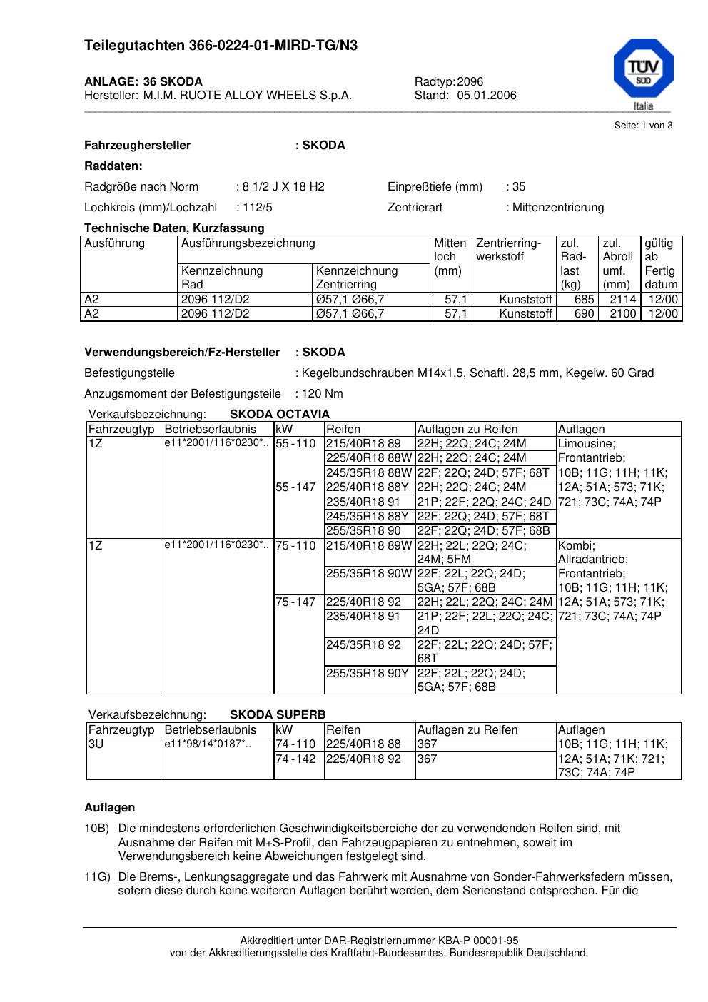 Dieses Gutachten (teilegutachten) bezieht sich auf die Alufelge ATS 2096 in der Ausführung 2Jx18 ET 0, Mittenloch 0 mm . Im PDF findest du typischerweise zulässige Reifengrößen, Auflagen/Anbauhinweise und – je nach Dokument – Hinweise zur Eintragung.