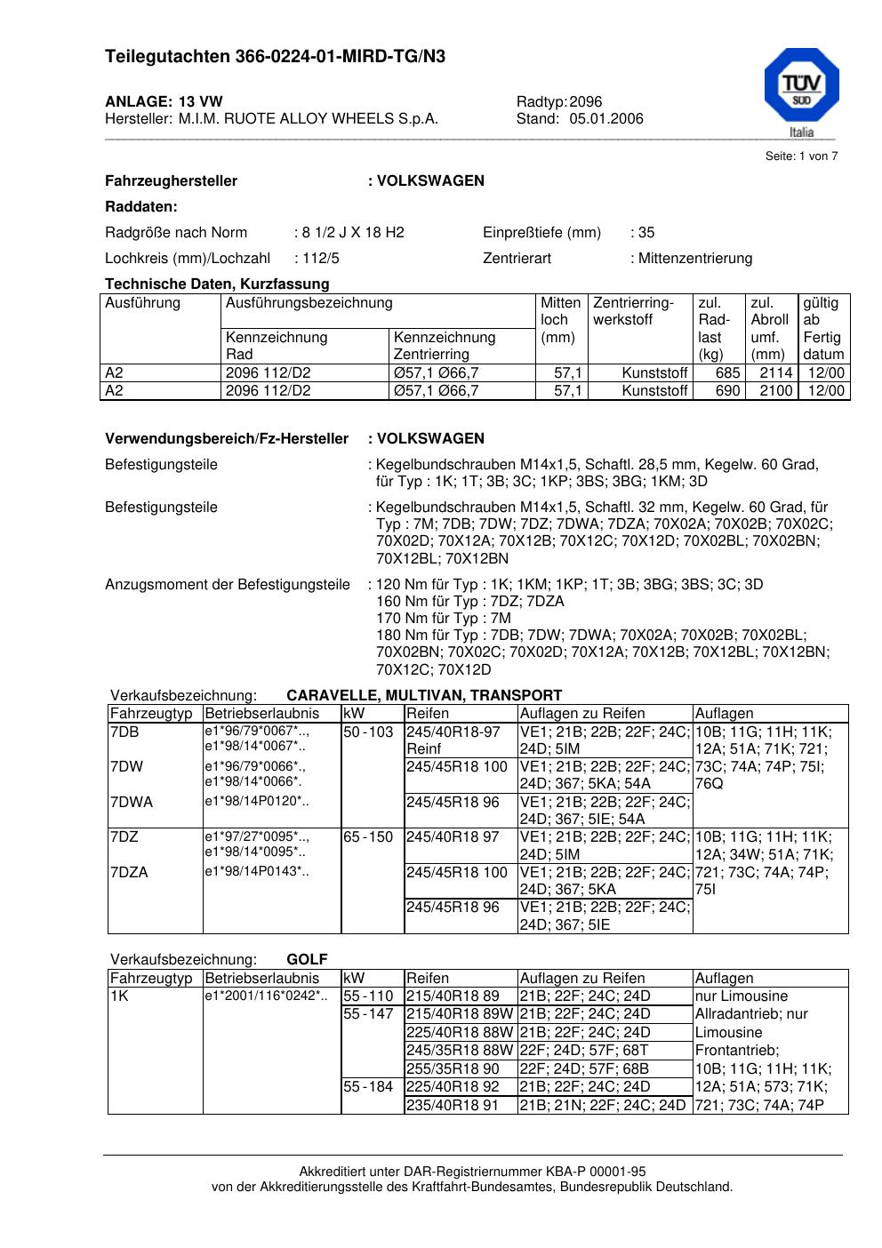 Dieses Gutachten (teilegutachten) bezieht sich auf die Alufelge ATS 2096 in der Ausführung 2Jx18 ET 0, Mittenloch 0 mm . Im PDF findest du typischerweise zulässige Reifengrößen, Auflagen/Anbauhinweise und – je nach Dokument – Hinweise zur Eintragung.