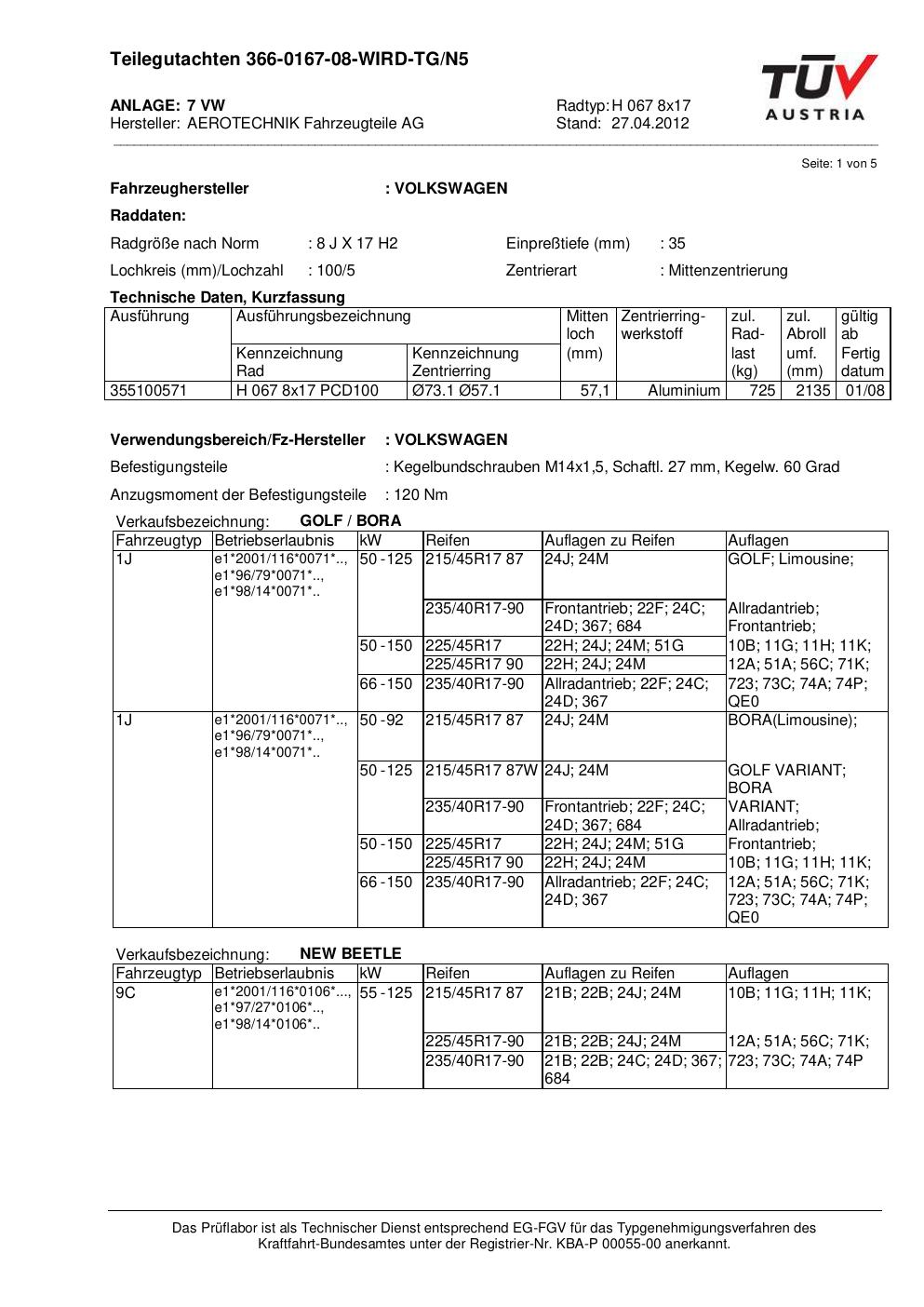 Dieses Gutachten (teilegutachten) bezieht sich auf die Alufelge ATS H 067 8x17 in der Ausführung 8Jx17 ET 0, Mittenloch 0 mm . Im PDF findest du typischerweise zulässige Reifengrößen, Auflagen/Anbauhinweise und – je nach Dokument – Hinweise zur Eintragung.
