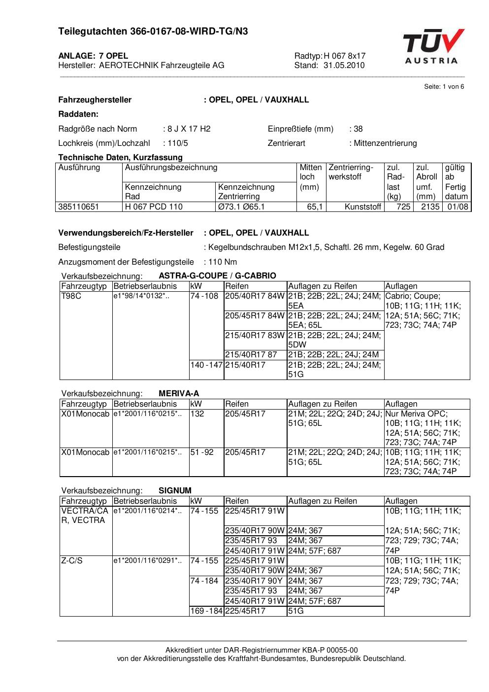 teilegutachten nicht ATS H 067 8x17