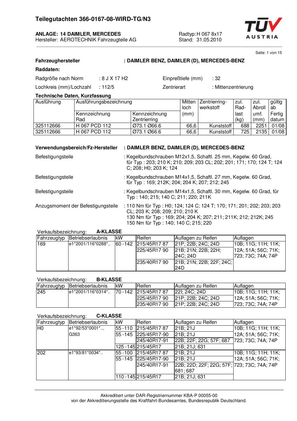 Dieses Gutachten (teilegutachten) bezieht sich auf die Alufelge ATS H 067 8x17 in der Ausführung 8Jx17 ET 0, Mittenloch 0 mm . Im PDF findest du typischerweise zulässige Reifengrößen, Auflagen/Anbauhinweise und – je nach Dokument – Hinweise zur Eintragung.