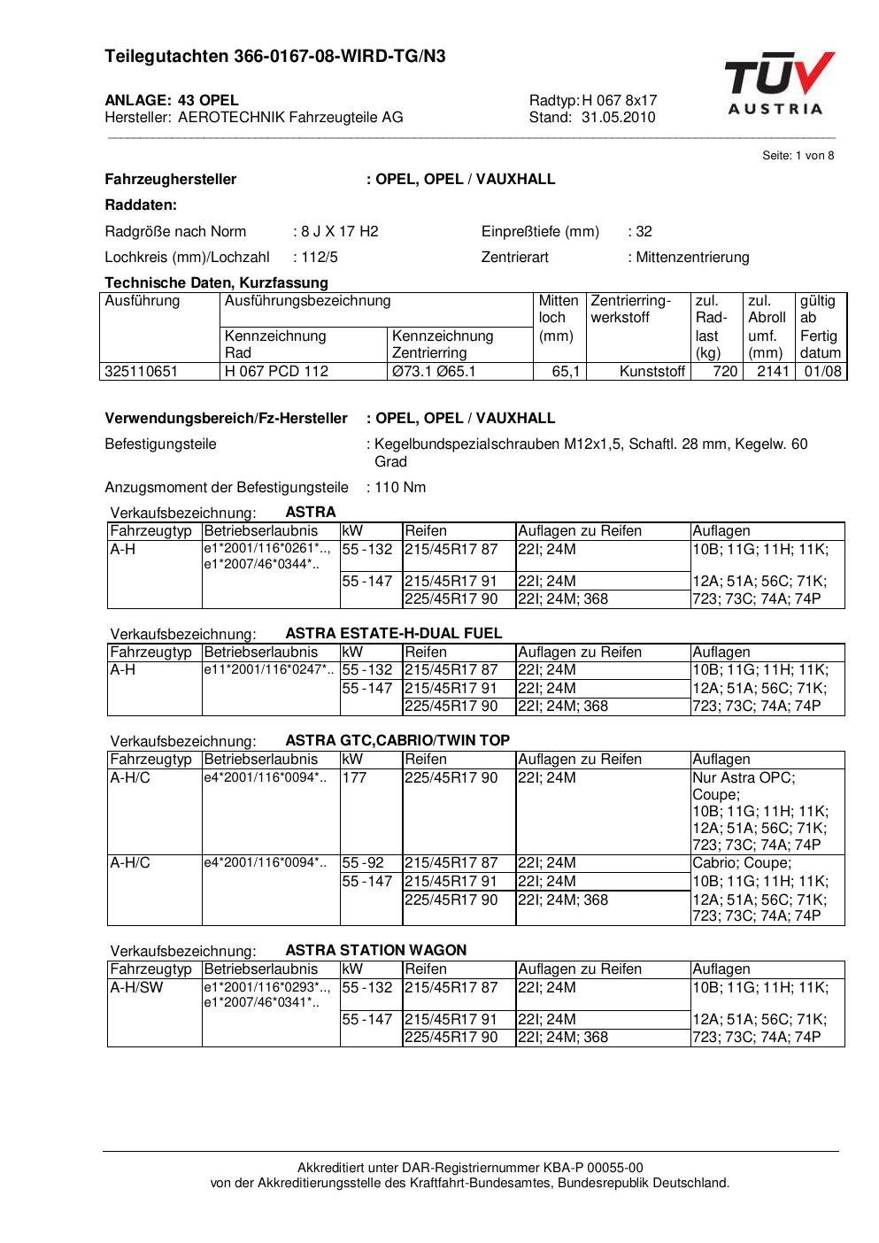 teilegutachten nicht ATS H 067 8x17