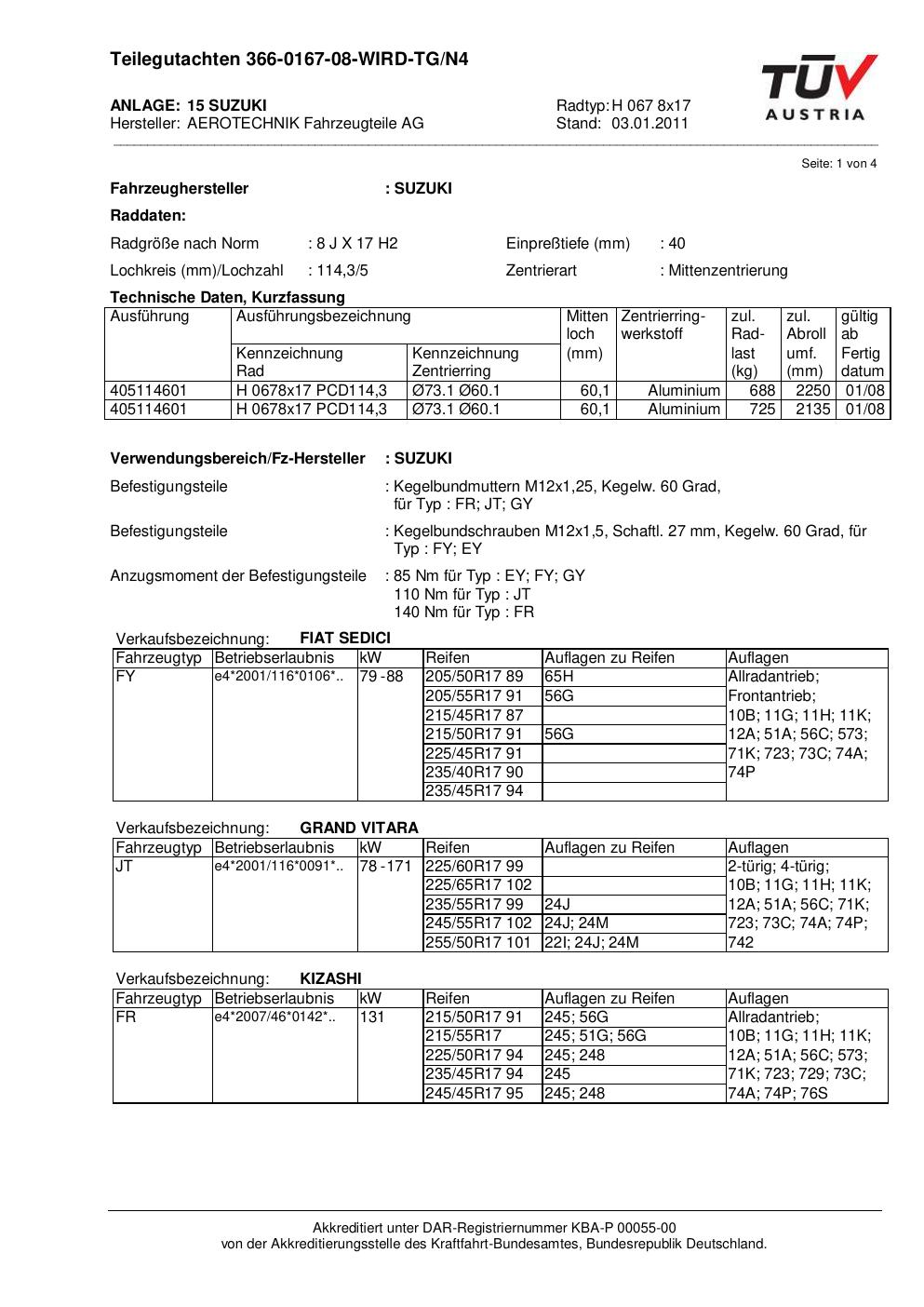 teilegutachten nicht ATS H 067 8x17