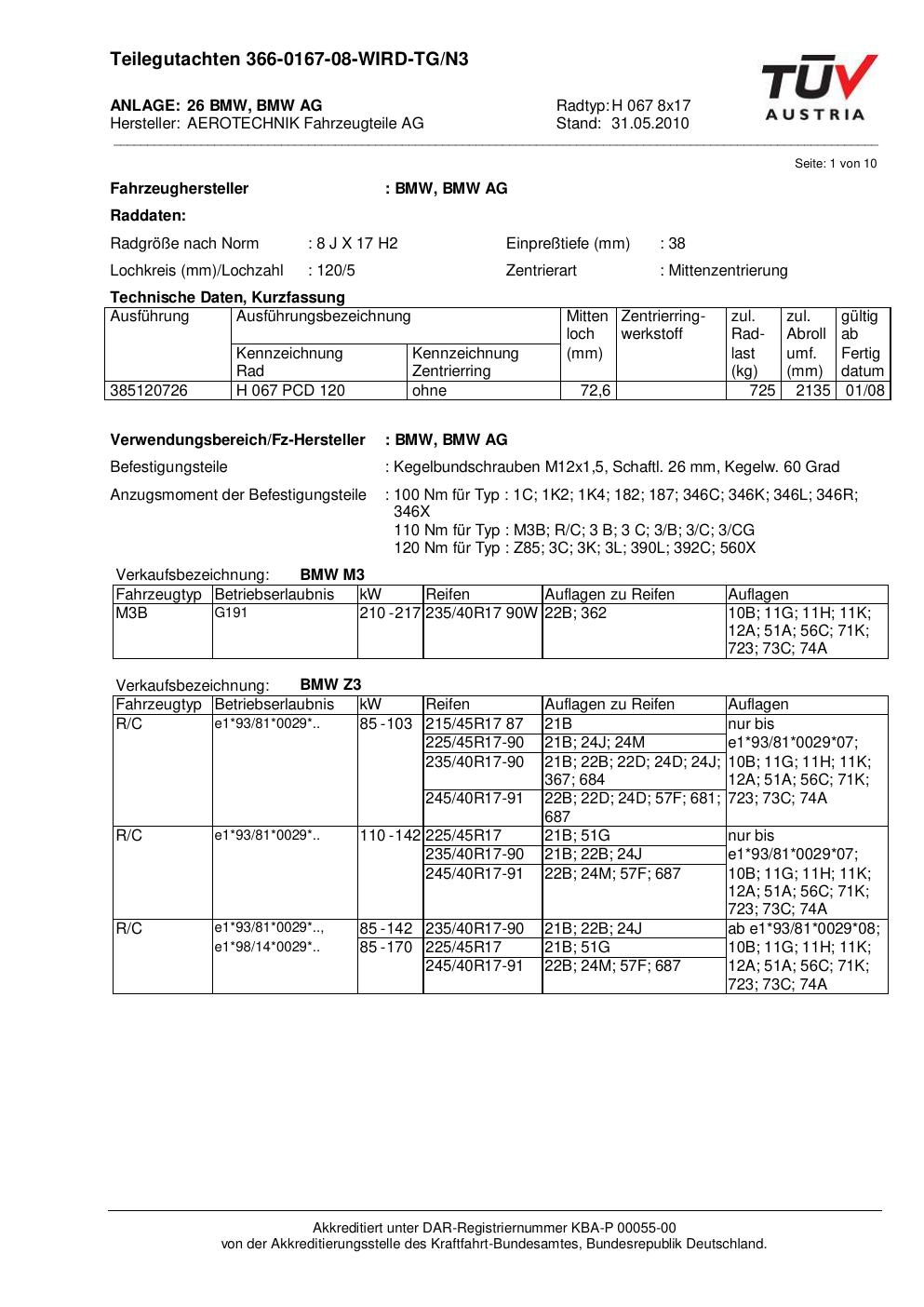 Dieses Gutachten (teilegutachten) bezieht sich auf die Alufelge ATS H 067 8x17 in der Ausführung 8Jx17 ET 0, Mittenloch 0 mm . Im PDF findest du typischerweise zulässige Reifengrößen, Auflagen/Anbauhinweise und – je nach Dokument – Hinweise zur Eintragung.