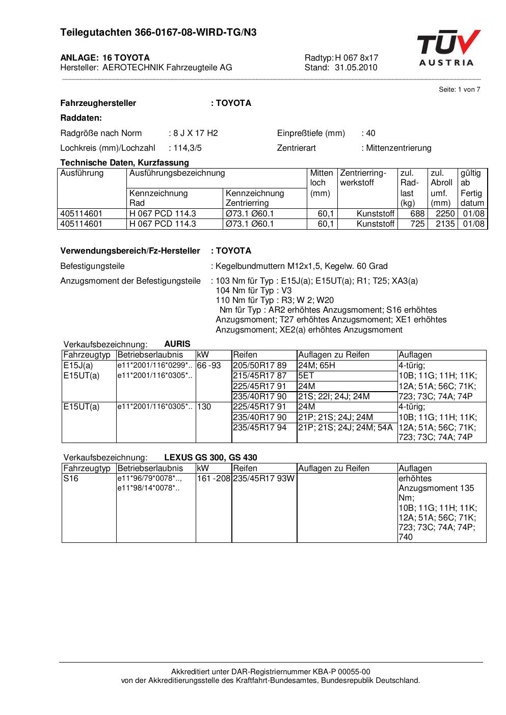 teilegutachten nicht ATS H 067 8x17