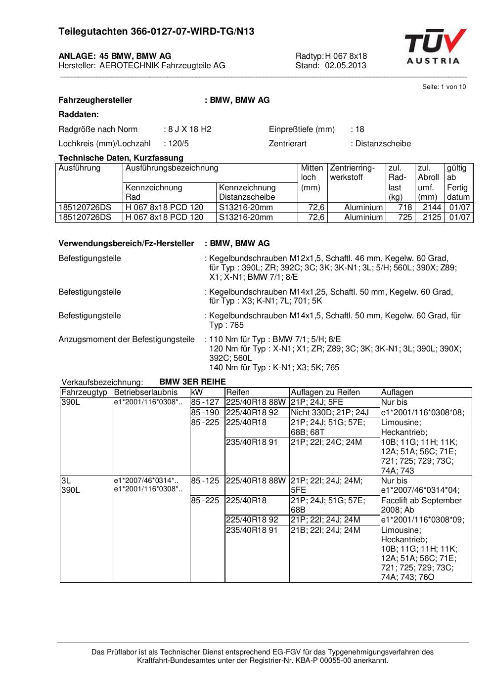 Dieses Gutachten (teilegutachten) bezieht sich auf die Alufelge ATS H 067 8x18 in der Ausführung 8Jx18 ET 0, Mittenloch 0 mm . Im PDF findest du typischerweise zulässige Reifengrößen, Auflagen/Anbauhinweise und – je nach Dokument – Hinweise zur Eintragung.