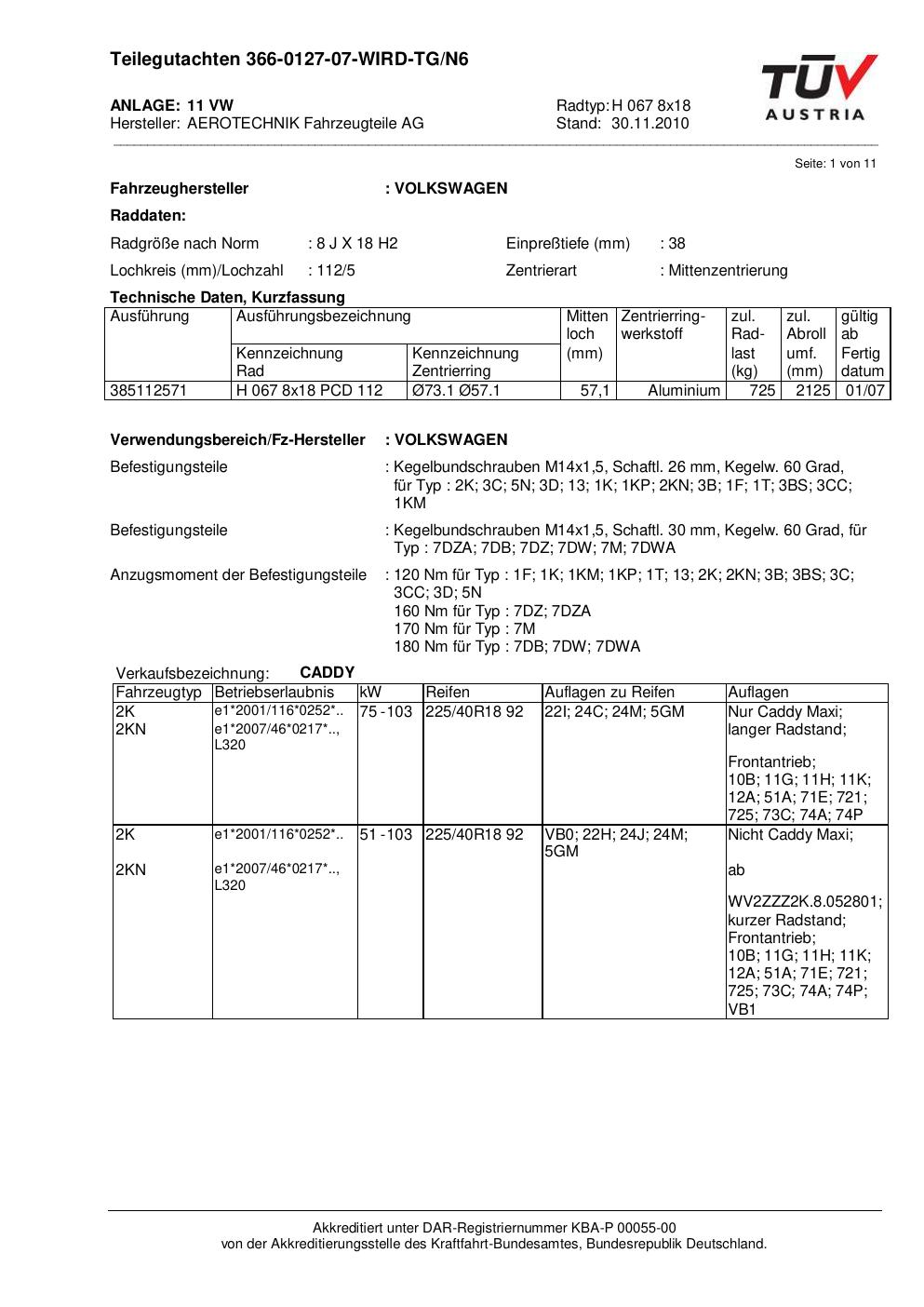 teilegutachten nicht ATS H 067 8x18