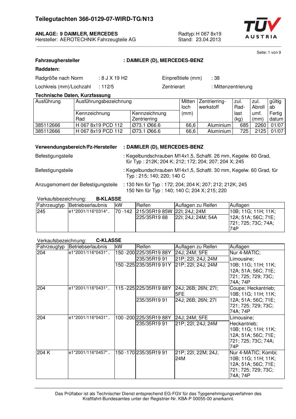 Dieses Gutachten (teilegutachten) bezieht sich auf die Alufelge ATS H 067 8x19 in der Ausführung 8Jx19 ET 0, Mittenloch 0 mm . Im PDF findest du typischerweise zulässige Reifengrößen, Auflagen/Anbauhinweise und – je nach Dokument – Hinweise zur Eintragung.