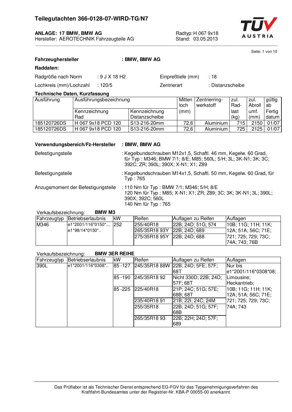 Dieses Gutachten (teilegutachten) bezieht sich auf die Alufelge ATS H 067 9x18 in der Ausführung 9Jx18 ET 0, Mittenloch 0 mm . Im PDF findest du typischerweise zulässige Reifengrößen, Auflagen/Anbauhinweise und – je nach Dokument – Hinweise zur Eintragung.