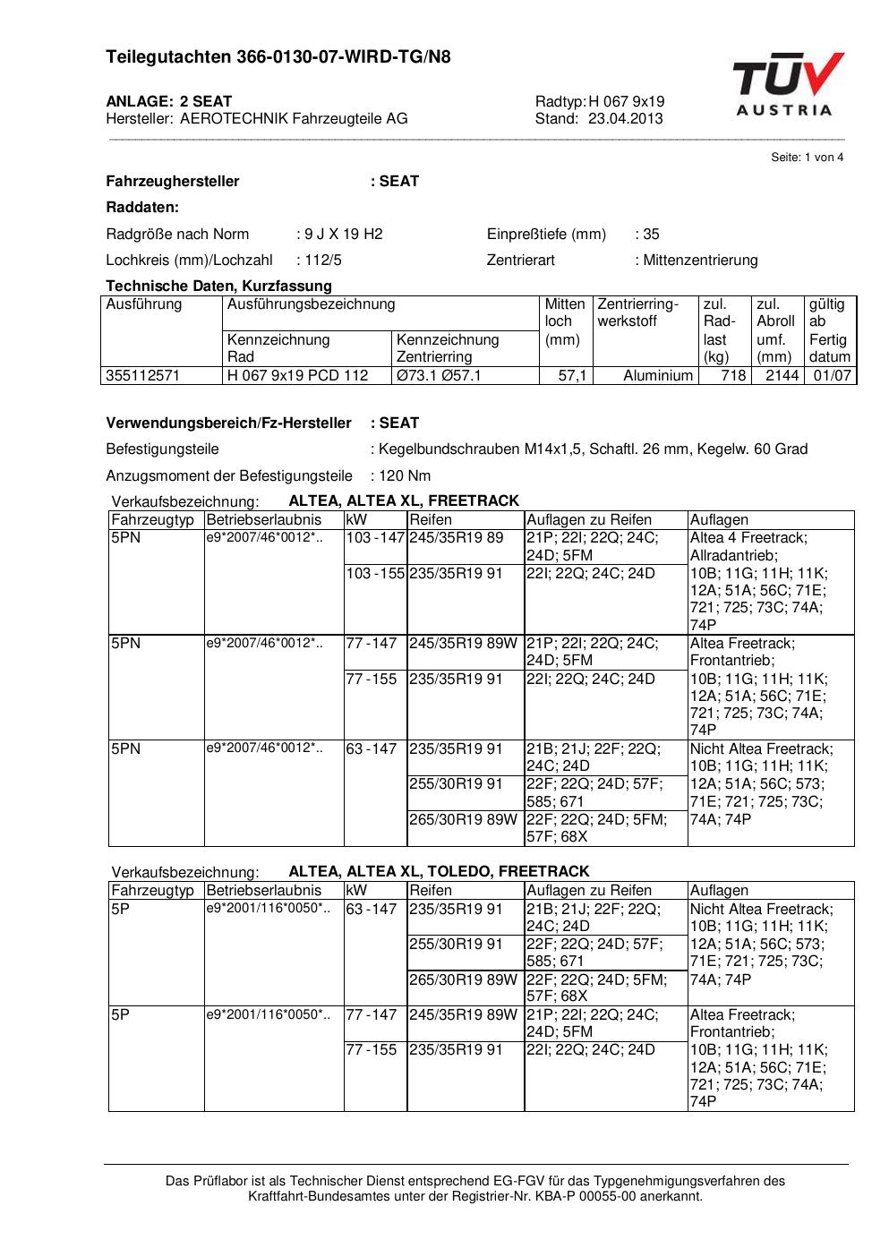 Dieses Gutachten (teilegutachten) bezieht sich auf die Alufelge ATS H 067 9x19 in der Ausführung 9Jx19 ET 0, Mittenloch 0 mm . Im PDF findest du typischerweise zulässige Reifengrößen, Auflagen/Anbauhinweise und – je nach Dokument – Hinweise zur Eintragung.