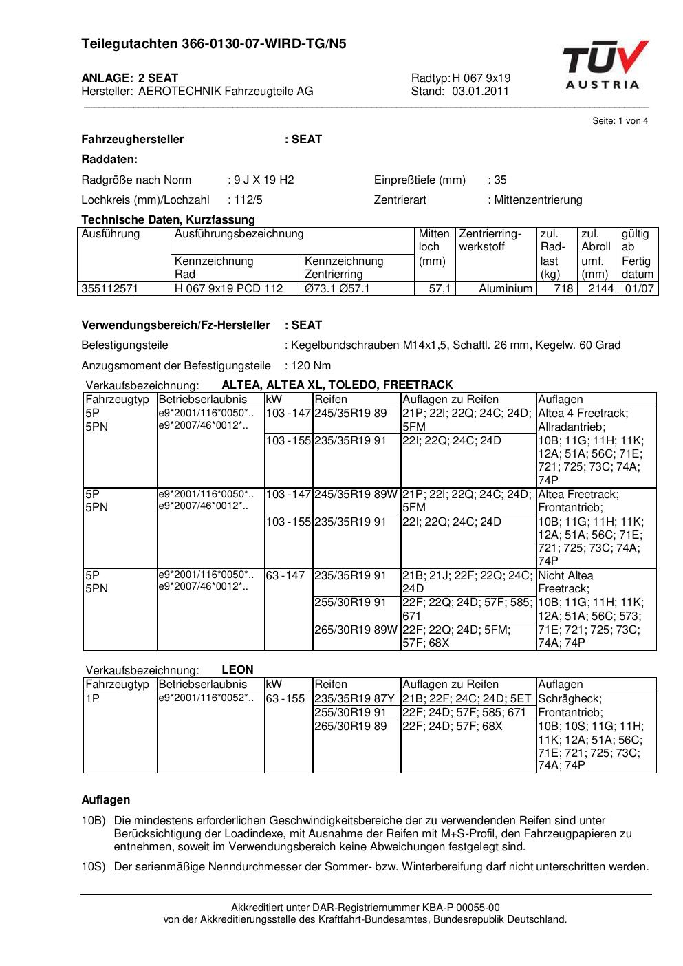 Dieses Gutachten (teilegutachten) bezieht sich auf die Alufelge ATS H 067 9x19 in der Ausführung 9Jx19 ET 0, Mittenloch 0 mm . Im PDF findest du typischerweise zulässige Reifengrößen, Auflagen/Anbauhinweise und – je nach Dokument – Hinweise zur Eintragung.
