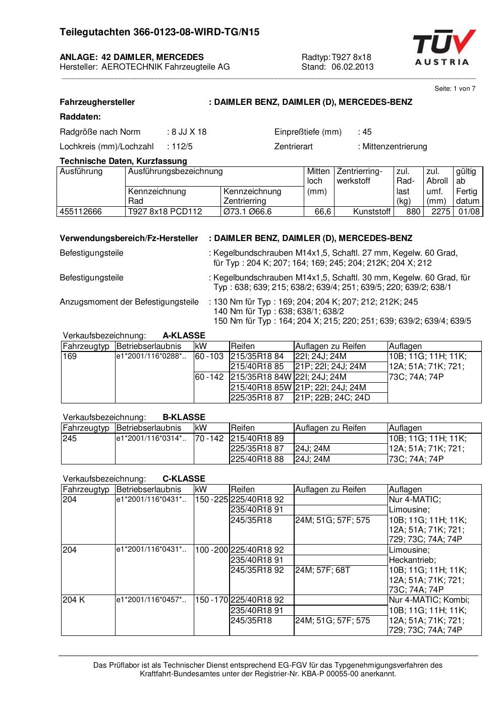 Dieses Gutachten (teilegutachten) bezieht sich auf die Alufelge ATS T927 8x18 in der Ausführung 8Jx18 ET 0, Mittenloch 0 mm . Im PDF findest du typischerweise zulässige Reifengrößen, Auflagen/Anbauhinweise und – je nach Dokument – Hinweise zur Eintragung.