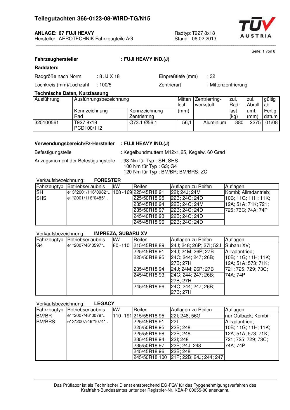 Dieses Gutachten (teilegutachten) bezieht sich auf die Alufelge ATS T927 8x18 in der Ausführung 8Jx18 ET 0, Mittenloch 0 mm . Im PDF findest du typischerweise zulässige Reifengrößen, Auflagen/Anbauhinweise und – je nach Dokument – Hinweise zur Eintragung.