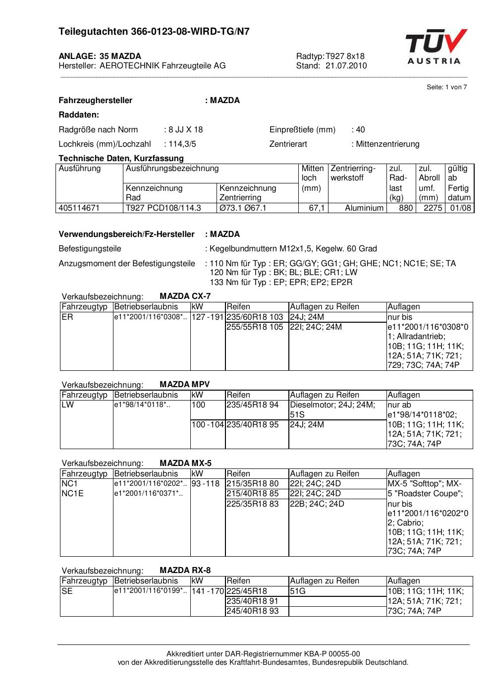 teilegutachten nicht ATS T927 8x18
