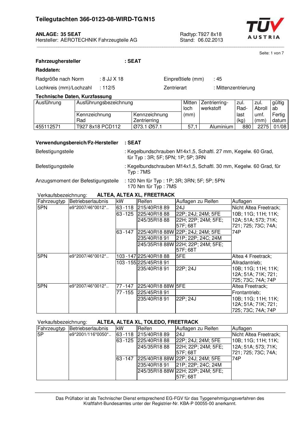 Dieses Gutachten (teilegutachten) bezieht sich auf die Alufelge ATS T927 8x18 in der Ausführung 8Jx18 ET 0, Mittenloch 0 mm . Im PDF findest du typischerweise zulässige Reifengrößen, Auflagen/Anbauhinweise und – je nach Dokument – Hinweise zur Eintragung.