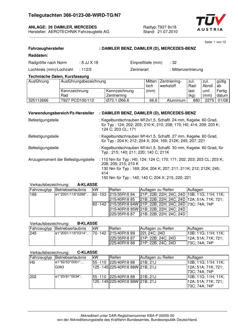teilegutachten nicht ATS T927 8x18