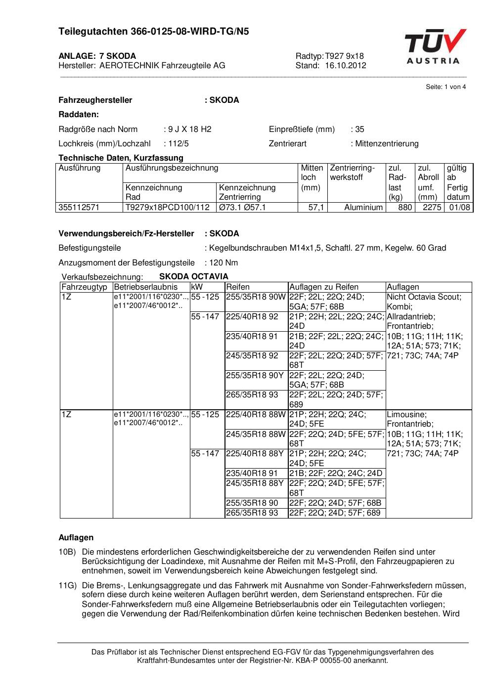 Dieses Gutachten (teilegutachten) bezieht sich auf die Alufelge ATS T927 9x18 in der Ausführung 9Jx18 ET 0, Mittenloch 0 mm . Im PDF findest du typischerweise zulässige Reifengrößen, Auflagen/Anbauhinweise und – je nach Dokument – Hinweise zur Eintragung.