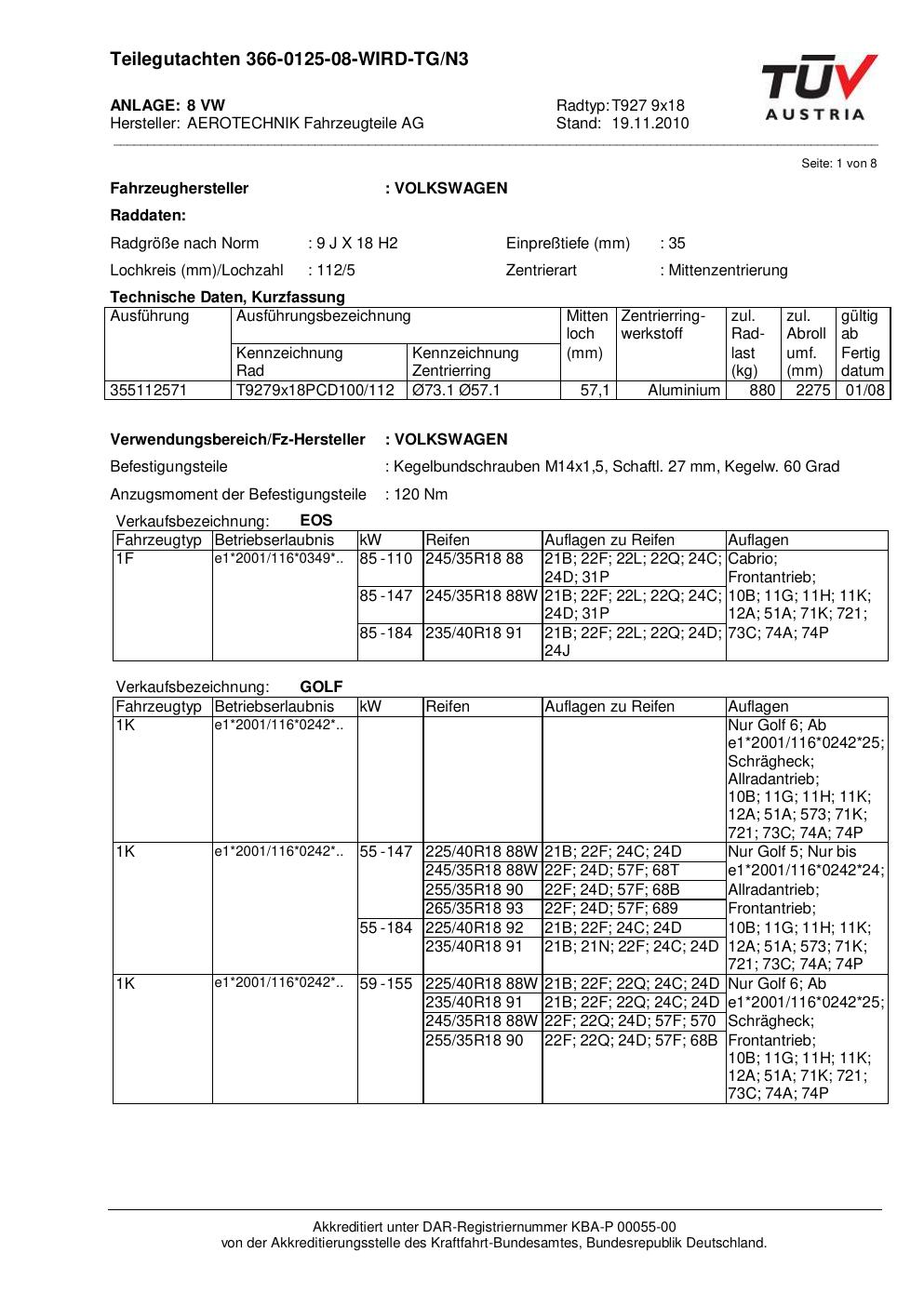 Dieses Gutachten (teilegutachten) bezieht sich auf die Alufelge ATS T927 9x18 in der Ausführung 9Jx18 ET 0, Mittenloch 0 mm . Im PDF findest du typischerweise zulässige Reifengrößen, Auflagen/Anbauhinweise und – je nach Dokument – Hinweise zur Eintragung.