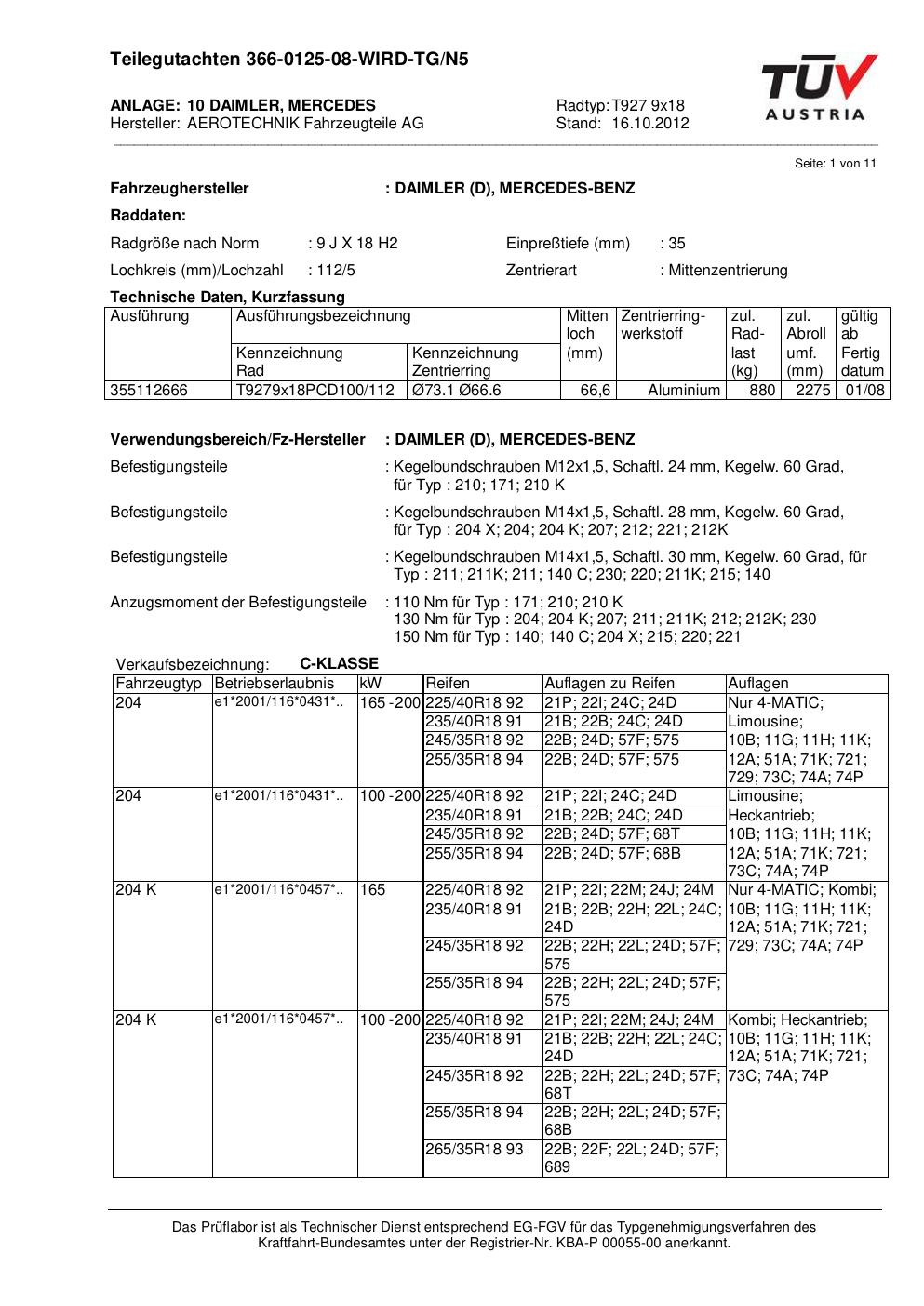 Dieses Gutachten (teilegutachten) bezieht sich auf die Alufelge ATS T927 9x18 in der Ausführung 9Jx18 ET 0, Mittenloch 0 mm . Im PDF findest du typischerweise zulässige Reifengrößen, Auflagen/Anbauhinweise und – je nach Dokument – Hinweise zur Eintragung.