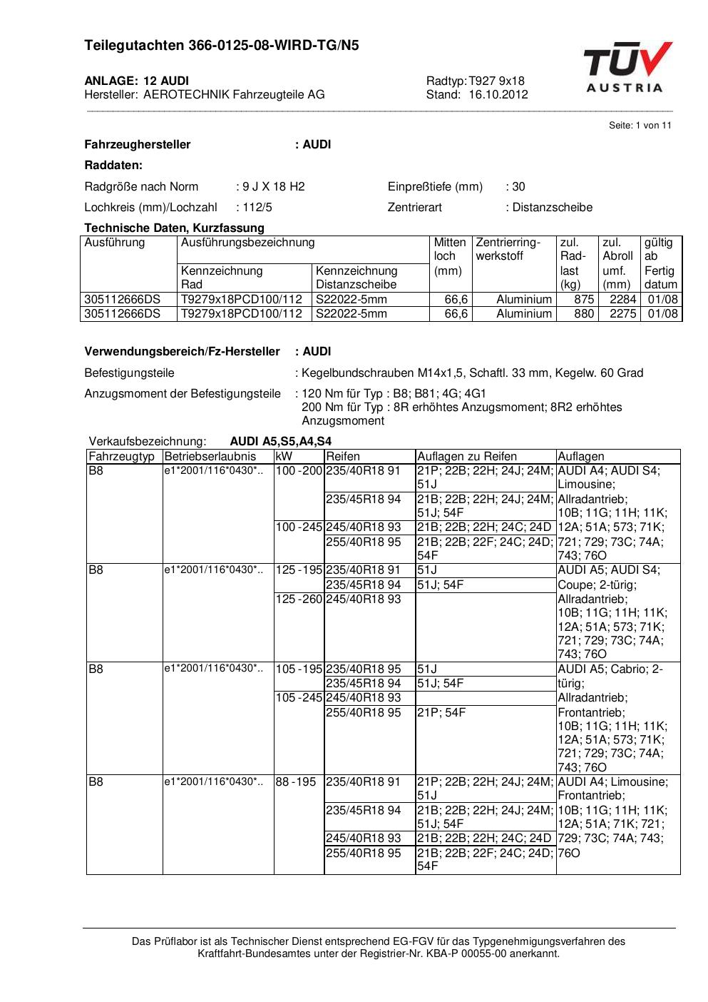 teilegutachten nicht ATS T927 9x18
