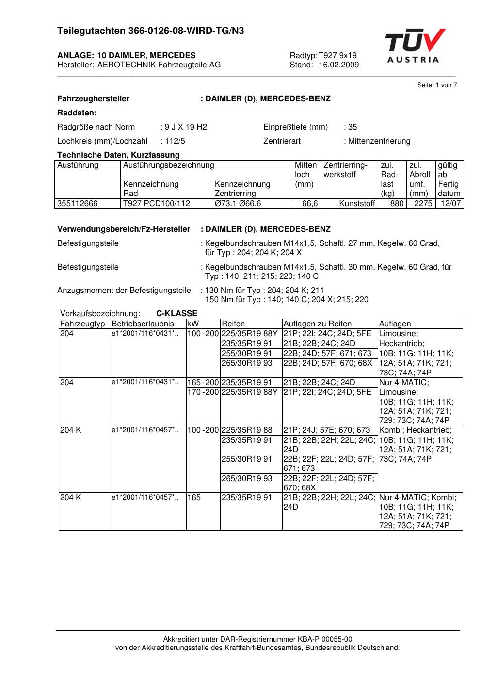 Dieses Gutachten (teilegutachten) bezieht sich auf die Alufelge ATS T927 9x19 in der Ausführung 9Jx19 ET 0, Mittenloch 0 mm . Im PDF findest du typischerweise zulässige Reifengrößen, Auflagen/Anbauhinweise und – je nach Dokument – Hinweise zur Eintragung.